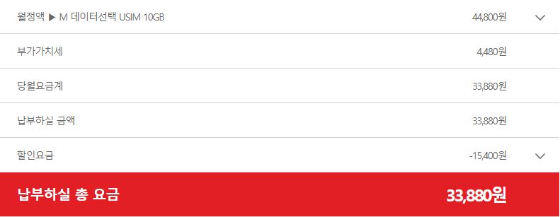 상단에서는 USIM 비용이 청구되는거로 나오지만