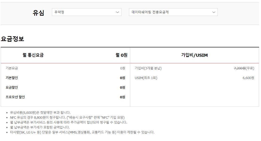 아래에 유심번호를 입력해 가입하면 따로 청구되지 않습니다