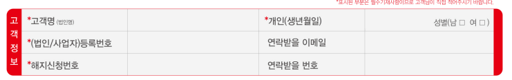 신청 서식에 보면 별표(*)항목 중 생년월일 외에 법인항목도 별표가 있는데